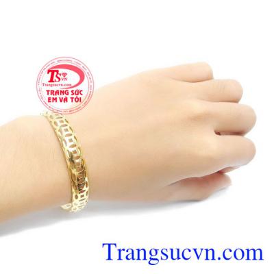 Vòng tay vàng tây kim tiền đẹp là sản phẩm vàng tây đẹp được thiết kế sang trọng, tinh tế, kiểu dáng trẻ trung, đeo ôm tay